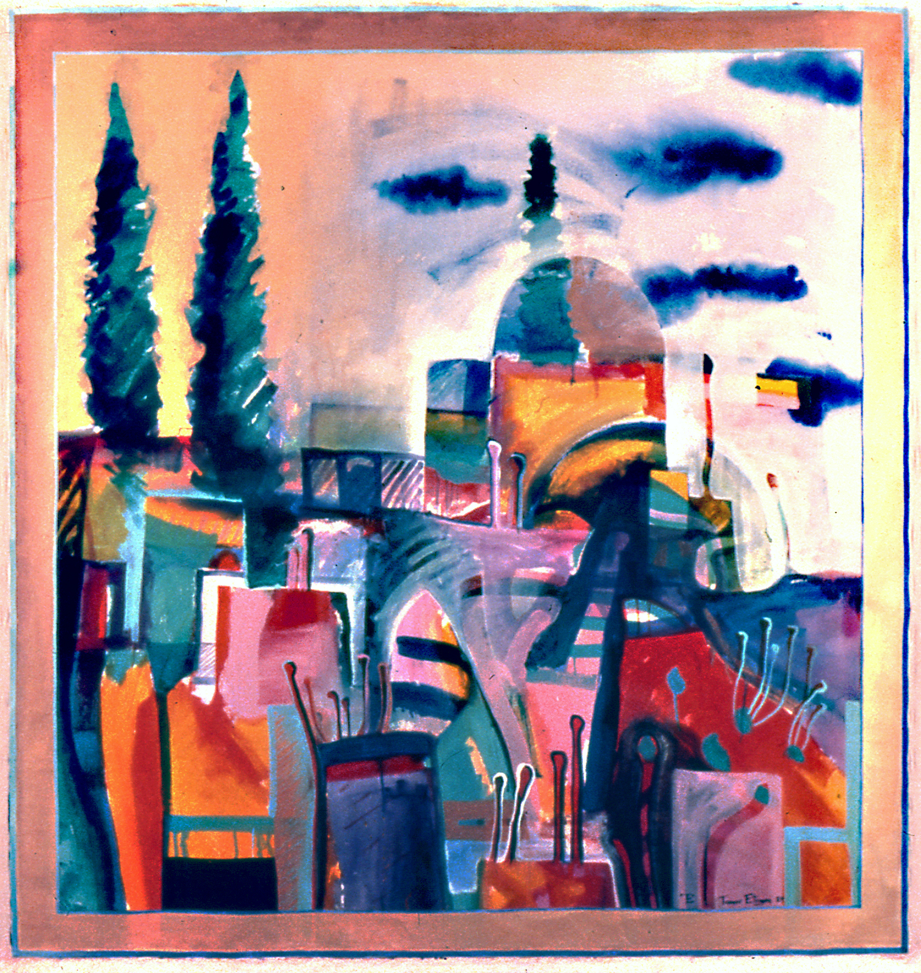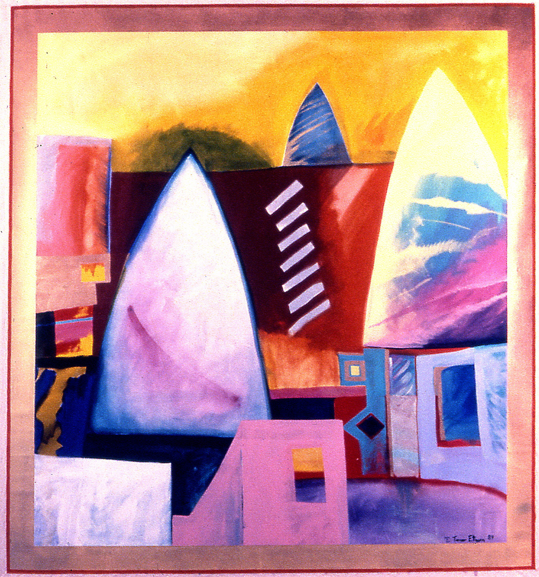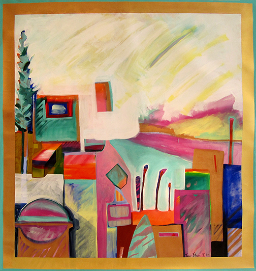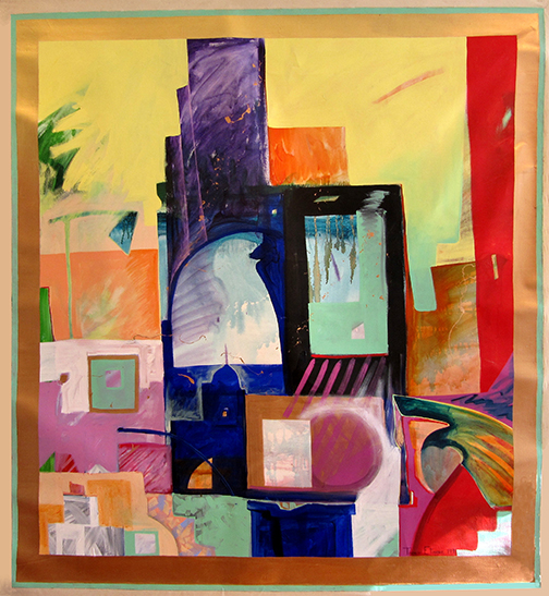 In the 1980’s Tamar began creating large abstract architectural landscapes. Reviewing the paintings more recently, she noticed that she’d been discovering a style that she’s used and refined in her present work. Through the Cambridge Arts Council’s Art Lending Program (2016-present), canvases from this series were hung in the reception area of the Cambridge Google headquarters, the offices of Unum Therapeutics and other locations.